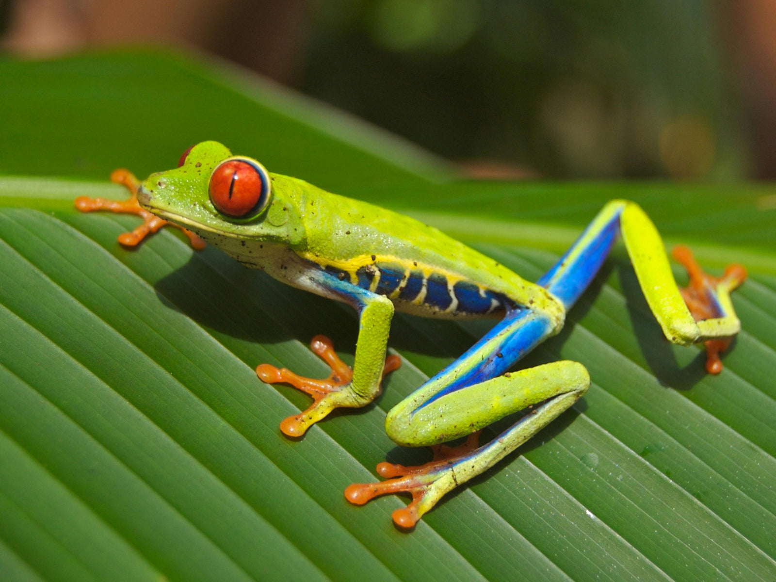 Bottom photo: a red-eyed tree frog (confident)