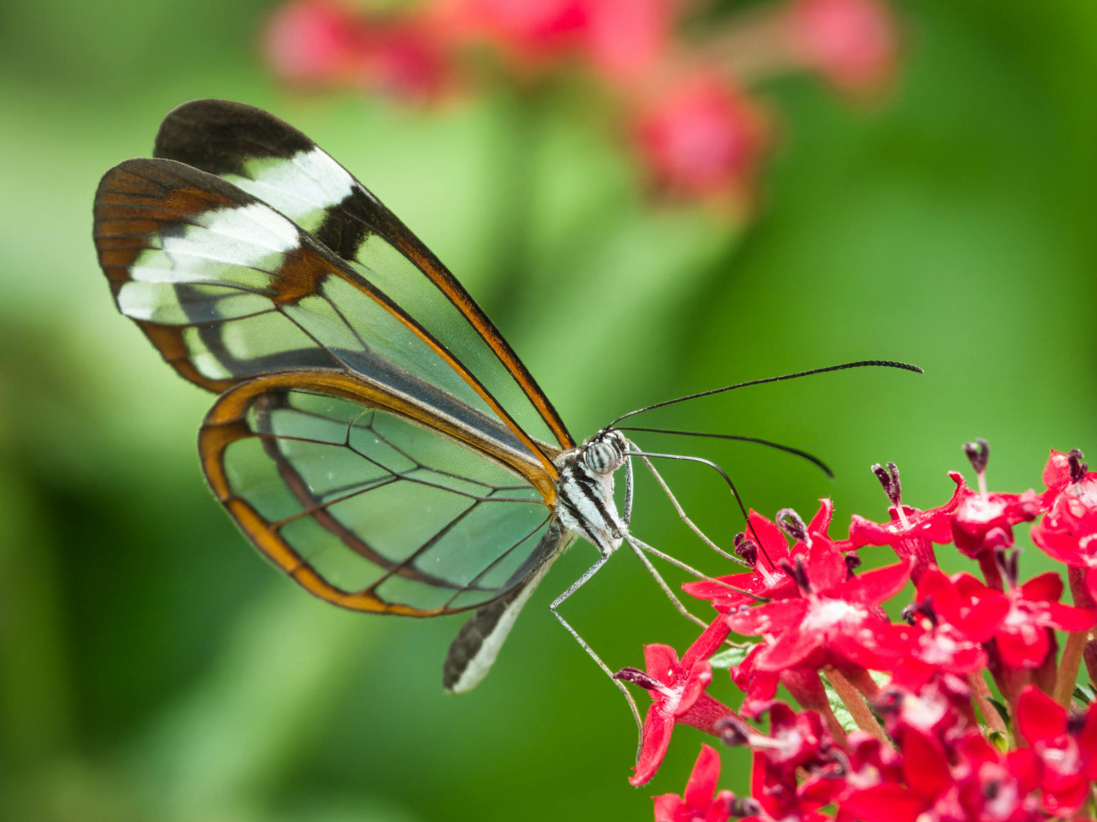 Bottom photo: a glasswing butterfly (tiny government debt and no impending crisis)