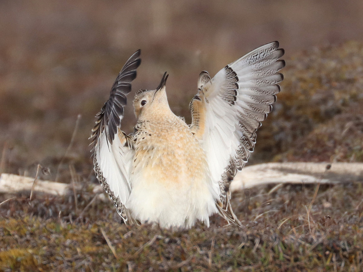 Bottom photo: a buff-breasted sandpiper reaching toward the sky (religious benefit)