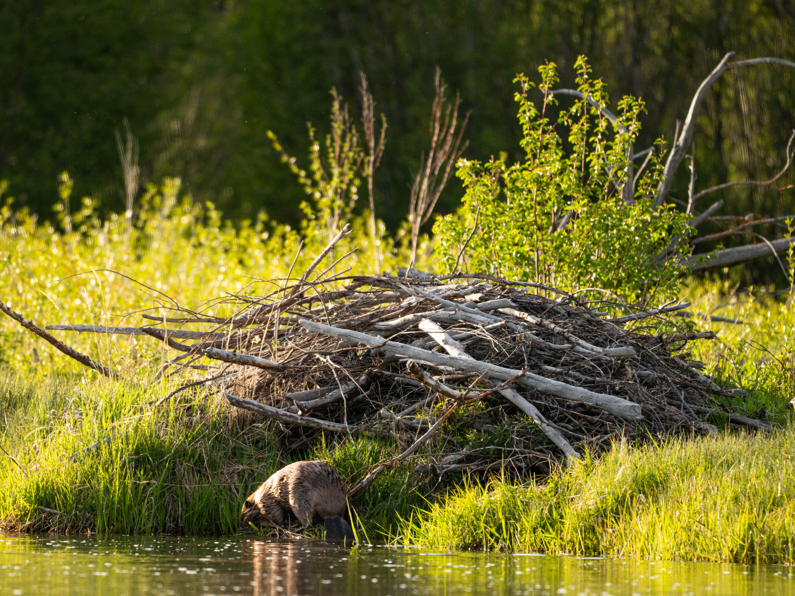 Bottom photo: a beaver and its lodge (homeowner)