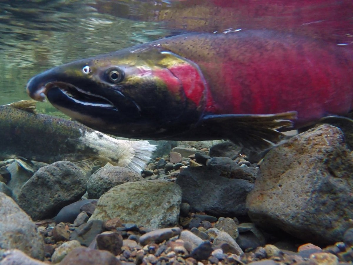 Top photo: thousands of amphipods consuming a dead coho salmon (death)