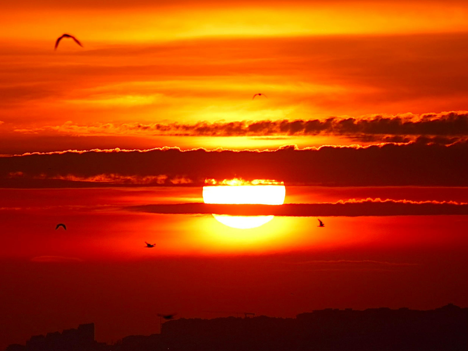 Top photo: a pig with a bird on its back swimming away from an island (can't move very far away)