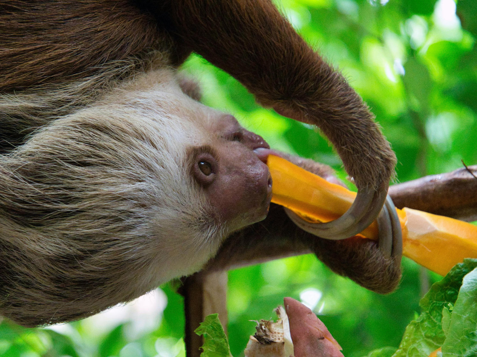 Top photo: a Hoffman's two-toed sloth eating fruit (slow metabolism)