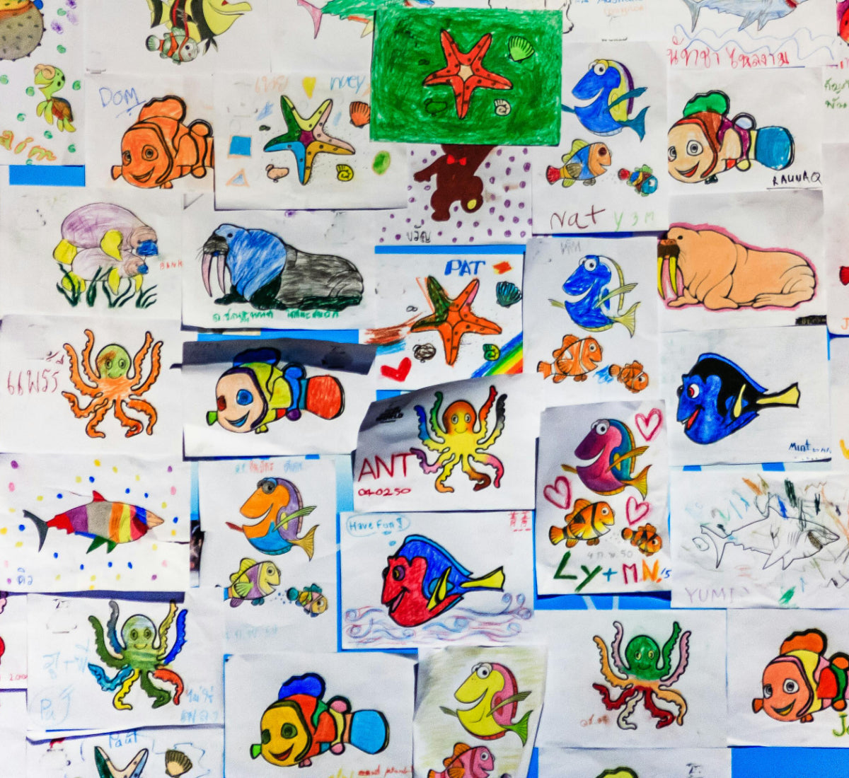 Bottom photo: a drawing of animals (organized)